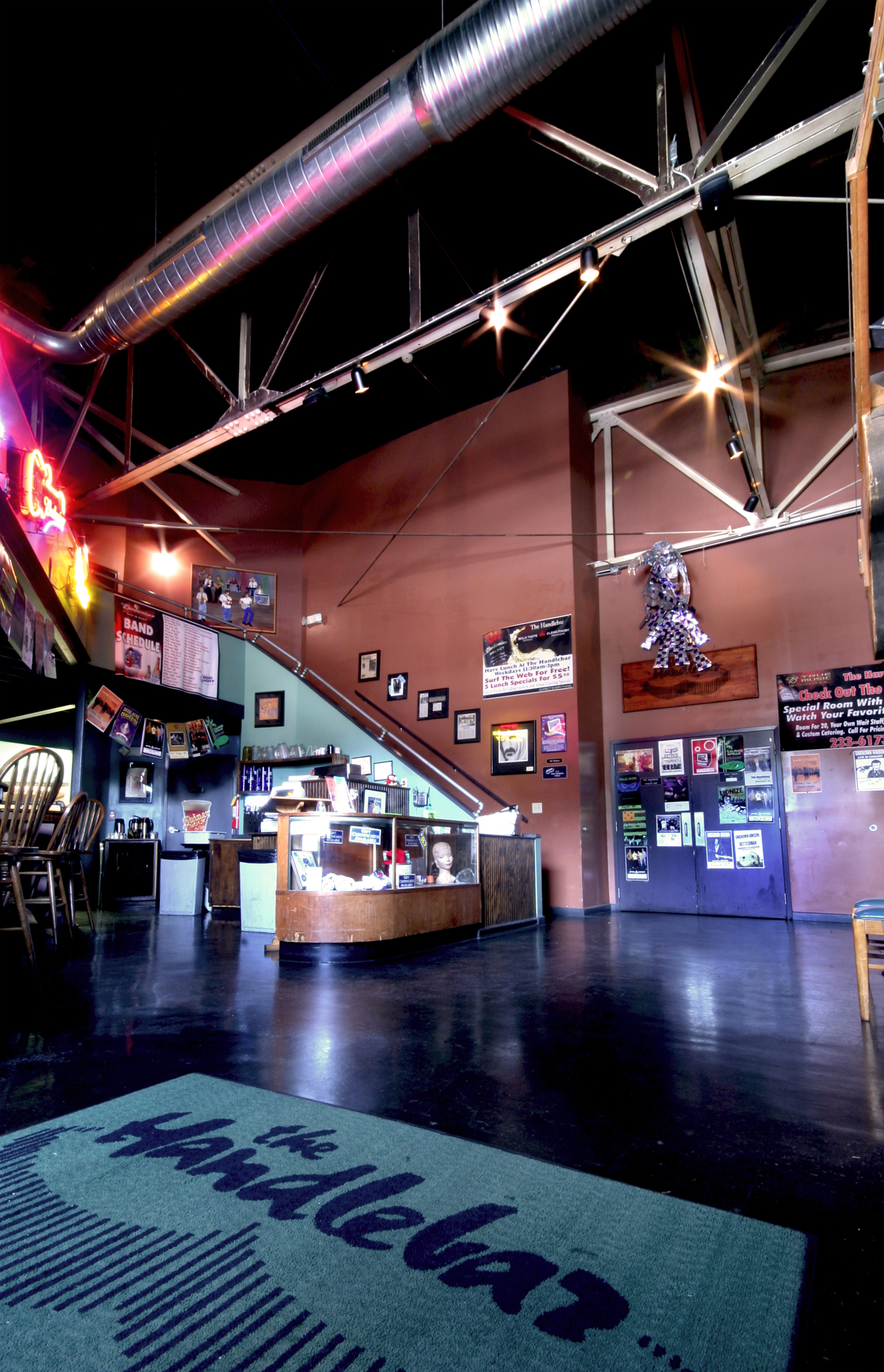With the innovation to accommodate the existing surroundings the old auto repair shop was an ideal spot for a music venue that is now known as "The Handlebar" on Stone Avenue.